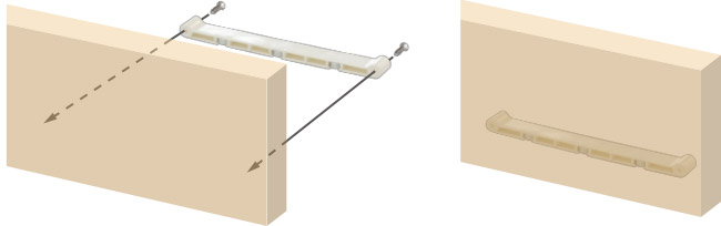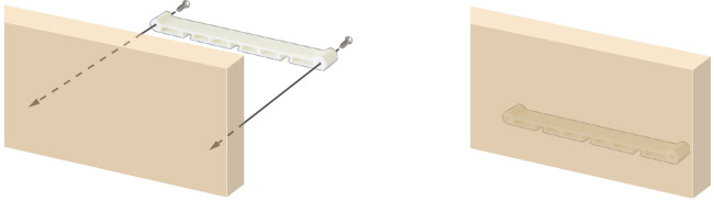 壁側パーツを石こうボード壁にはクロスピン、木壁にはネジで取り付けます。