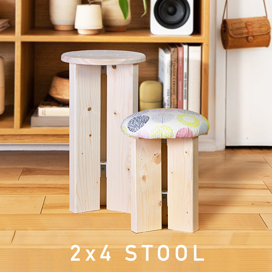 市販の2×4材を使って、自分だけのスツールをDIYしませんか。専用の低反発ウレタンクッションもご用意しています。