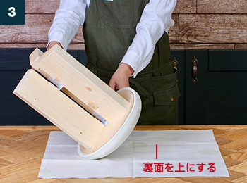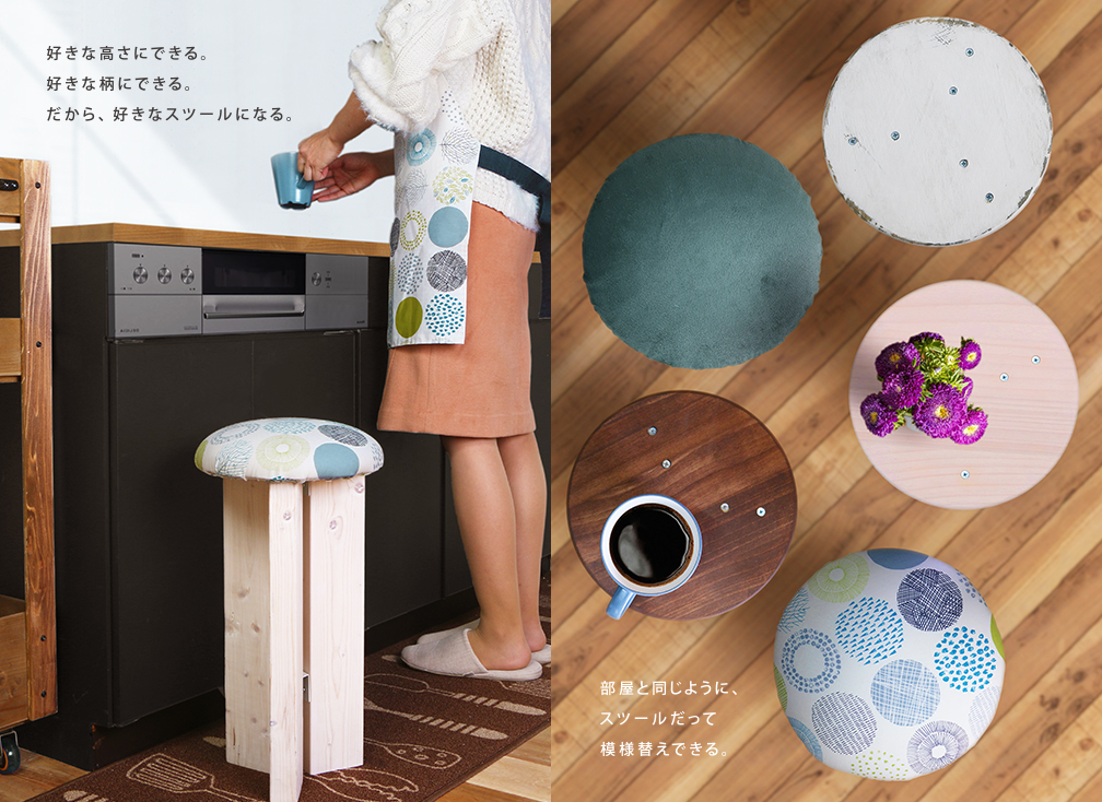 好みの生地でアレンジする場合は、裏返した生地の上にSTOOLを逆さまに置きます。