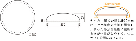 〔専用ウレタンクッション〕の上から市販の直径30cm用の座面カバーを被せて完成です。※適合しない場合もあります。