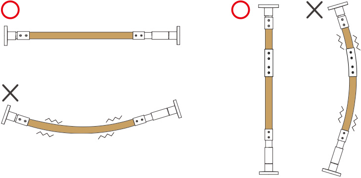 ・つっぱる時に、力をかけすぎて棒が反っていないかを確認してください。