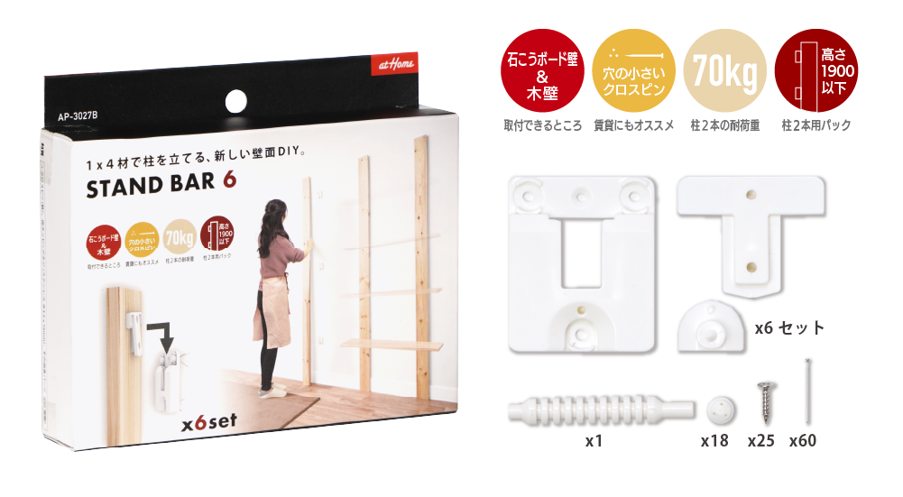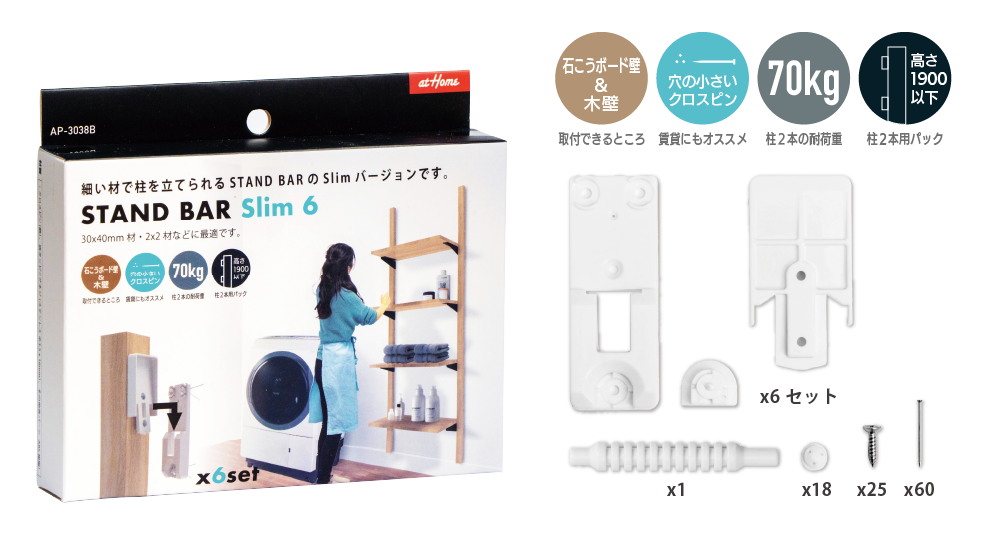 細い材で柱を立てられるSTAND BAR Slim の6本セット入りパックです。