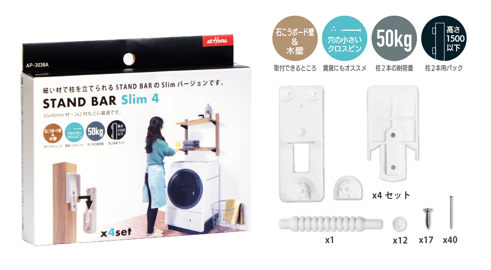 細い材で柱を立てられるSTAND BAR Slim の4本セット入りパックです。