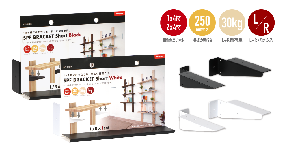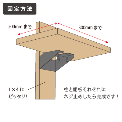 奥行き250mmまで対応のSPF材に適した棚受けです。