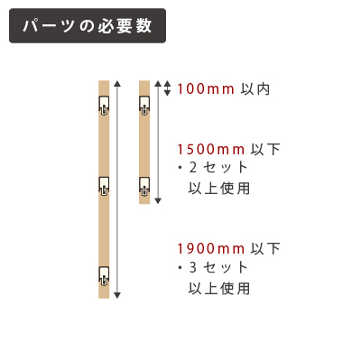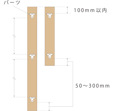 パーツをなるべく等間隔で取り付けることで、柱の反りを抑えることができます。