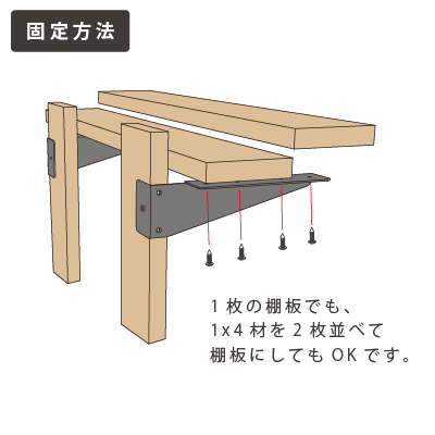 材質 : 棚受(鉄、塗装仕上)・トラスタッピングネジ(鉄、 φ3.5 x 16 mm)