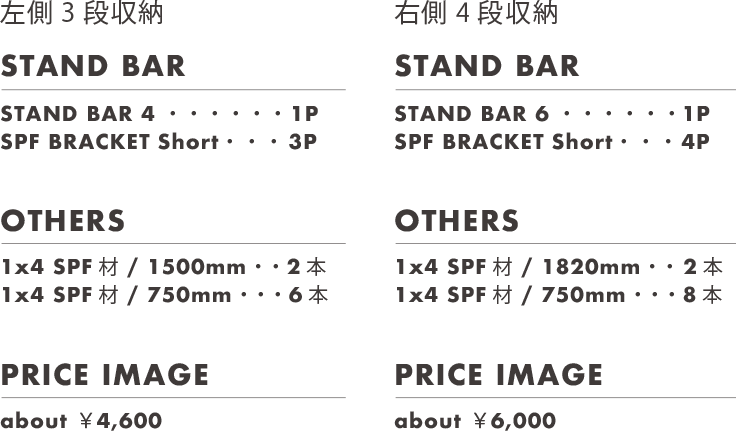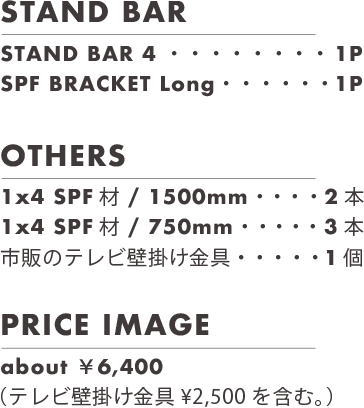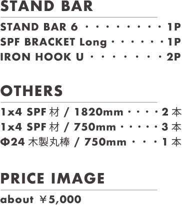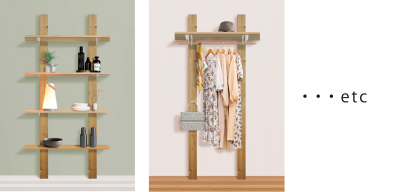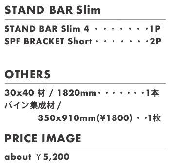 STAND BAR Slimは30×40mm材や2×2材などの一般的な木材を使って細い柱でスタイリッシュな収納がDIY出来ます。自分ならではのスリムな収納棚をDIYしてみませんか。