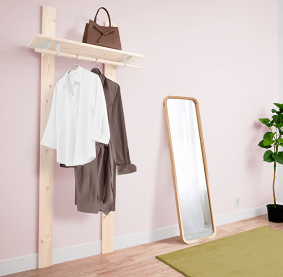 市販の丸棒と組み合わせて簡単に衣類収納が作れます。