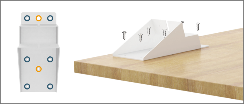 6ヶ所のネジ穴を使って、ナナレグを天板裏面にしっかりとネジ止めしましょう。