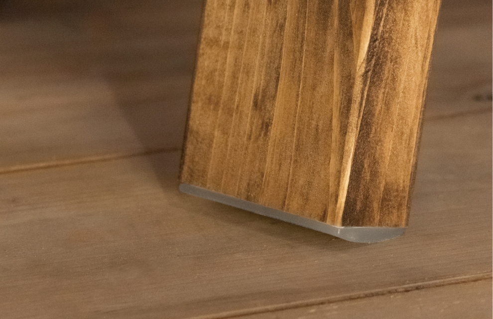 nanaCare[ナナケア]は、2×4材の脚が床を傷つけないよう、脚先に取り付けて使用する半透明の保護パーツです。両面テープを使用し、脚先に貼り付ける仕様にすることで美しいテーブルの外観を邪魔しない保護パーツになりました。ナナレグで作ったテーブルは勿論、ソーホースなど2×4材を使用したDIYにもご活用いただけます。