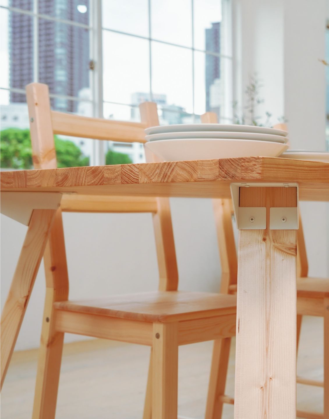 nanaLeg [ナナレグ]は、2×4材で「斜め」のテーブル脚が作れるDIYパーツです。今まで難しかった斜め脚のテーブルも美しくDIYすることができます。もう手作り=チープなテーブルではありません。向きや色、サイズなどを自由にできるウッディな脚と天板でお部屋に合わせたアレンジをお楽しみください。