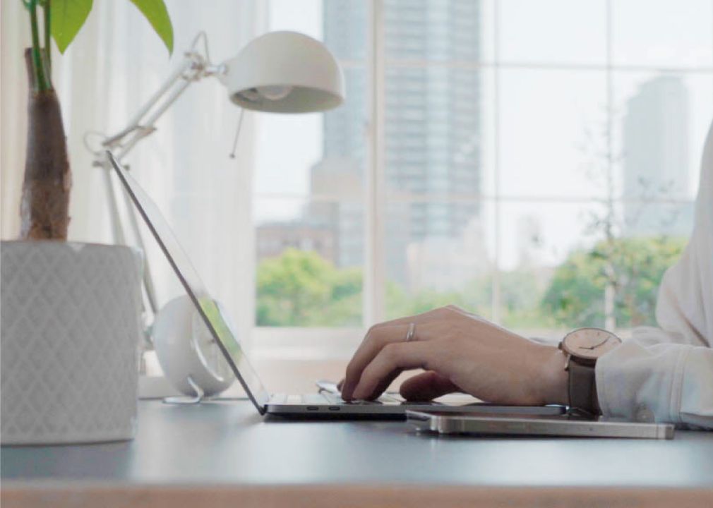 ナナウケで取り付けた引き出しに電源タップを設置すれば、作業時に机の横から充電ケーブルが垂れることもなく、美しく機能的なデスクになります。