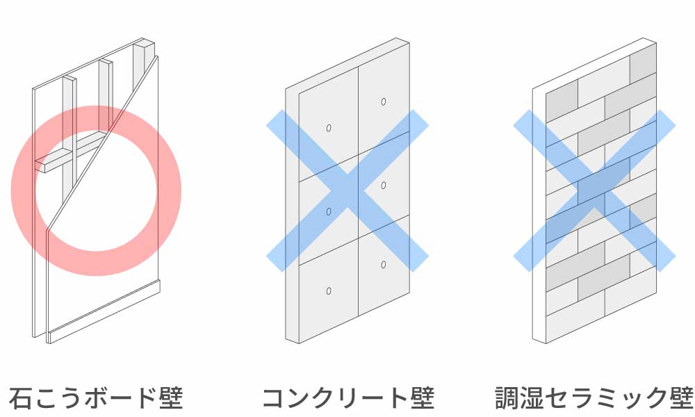 石こうボード壁の下地(間柱、木材)のない部分に使える?