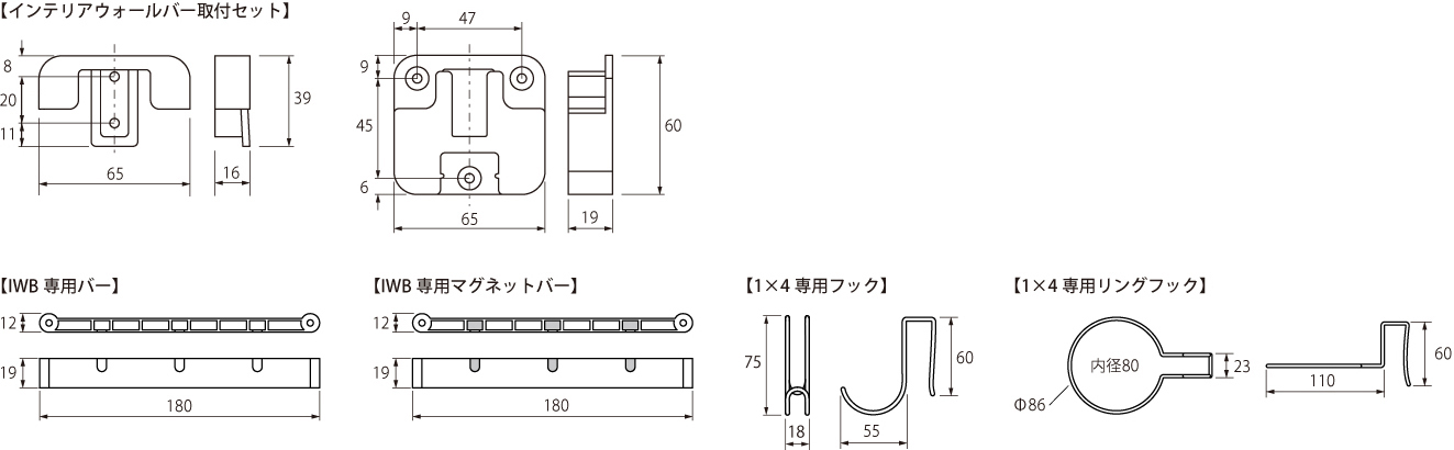 | AP-3012A | インテリアウォールバー 取付セット | 10P | 100P | W95×H180×D23 | 53012 6 |