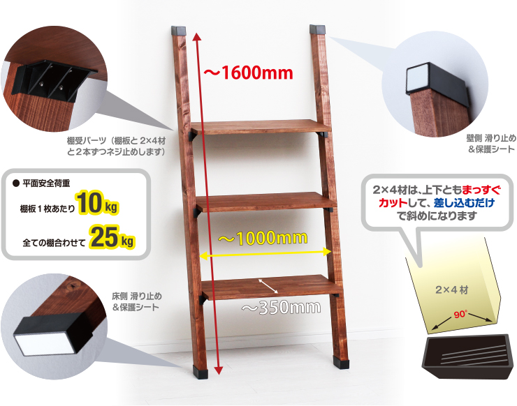 | AP-3007B | 2×4 立て掛けシェルフ ブラック | 24P | W170×H240×D47 | 49 54957 43007 5 |