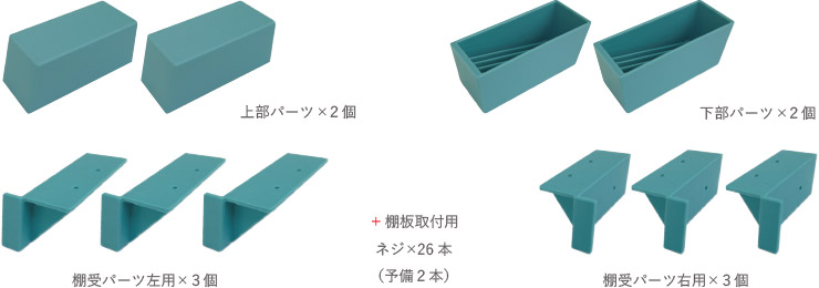 材質:上部・下部・棚受パーツ(ABS樹脂)/ ネジ(φ3.5×16mm/ステンレス/トラスタッピング)