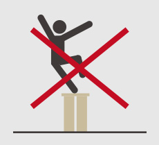 絶対にスツールの上に乗ったり、立ち上がったりしないでください。