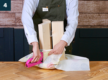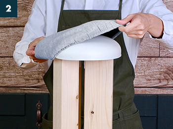 好みの生地でアレンジする場合は、裏返した生地の上にSTOOLを逆さまに置きます。