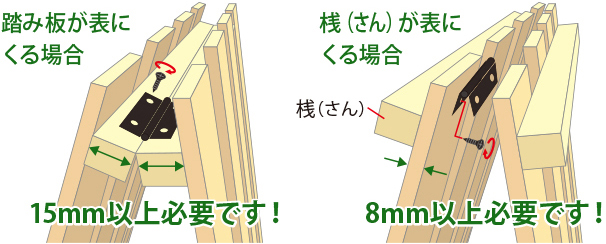 ※またネジ止めの箇所には 8 mm以上の厚みが必要です。注意してすのこをお選びください!