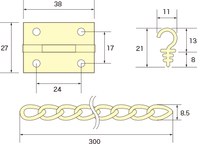 開き角度調整チェーン(鉄) 洋灯フック(鉄)2個 全て塗装仕上