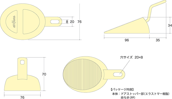 持ち手のついた新しいドアストッパーです。使っていないときには玄関の床に置いておくことの多いドアストッパー。セットしたり外したりする時にも持ち手があるので手が汚れません。どことなく可愛いデザインでもありますが、幅の広いフォルムにはしっかりとドアを受け止める機能的な意味もあります。是非お宅の玄関に、靴と一緒に並べてあげてください!