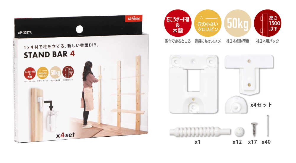 細い材で柱を立てられるSTAND BAR Slim の4本セット入りパックです。