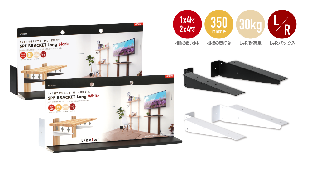 奥行き350mmまで対応のSPF材に適した棚受けです。