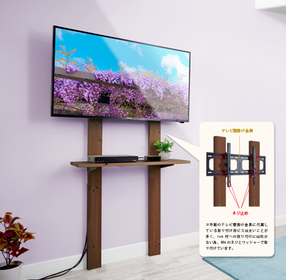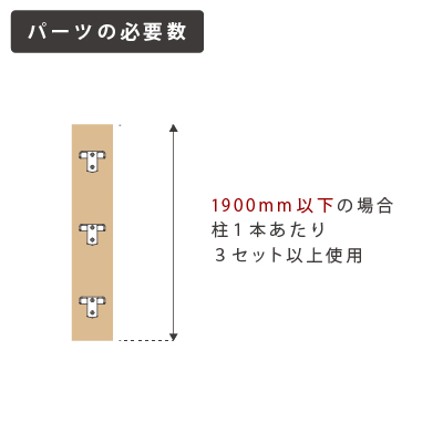 パーツをなるべく等間隔で取り付けることで、柱の反りを抑えることができます。