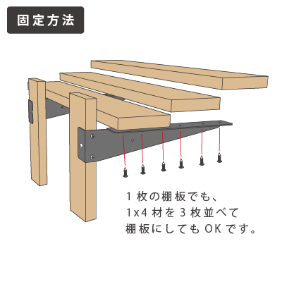 材質 : 棚受(鉄、塗装仕上)・トラスタッピングネジ(鉄、 φ3.5 x 16 mm)
