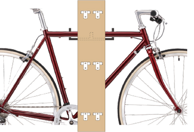 STAND BARで1x6材の柱を作って市販の自転車壁掛け金具と組み合わせれば、とてもスッキリとしたバイクスタンドを作ることができます。
