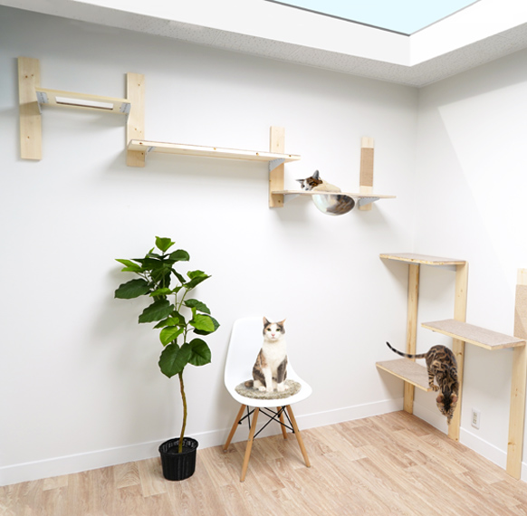 STAND BARでキャットウォークを作れば、高さや長さなどサイズを自由に設計できるほか、プラン次第で価格を抑えることもできます。成長に合わせて少しずつ拡げていく…なんていうのも魅力的ですね。