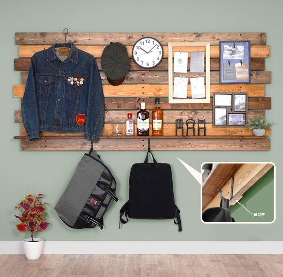 1本1本、好みの色で塗り分けたり、お気に入りのフックをネジ止めして自分だけの収納を楽しんでください。