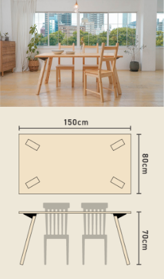 天板サイズ:150cm×80cm 天板厚み:2.5cm 天板材質:パイン集成材 脚材質:SPF材(2x4材)
