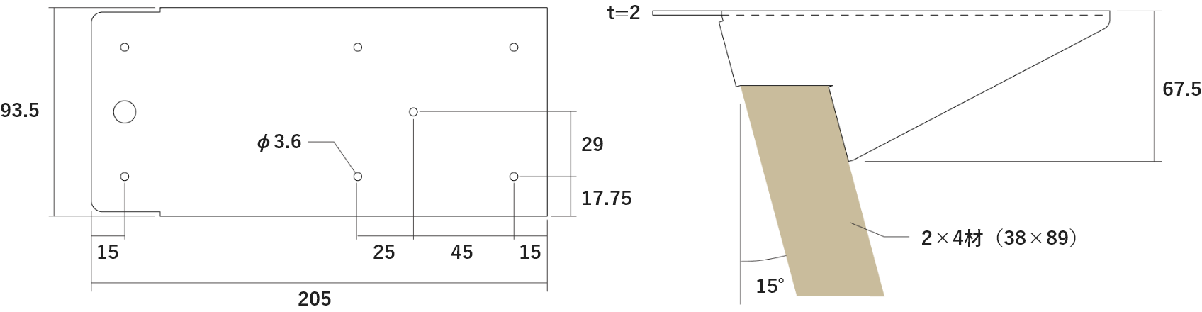 材質:nanaUke(鉄)・タッピングネジ(鉄φ3.5×16mm)