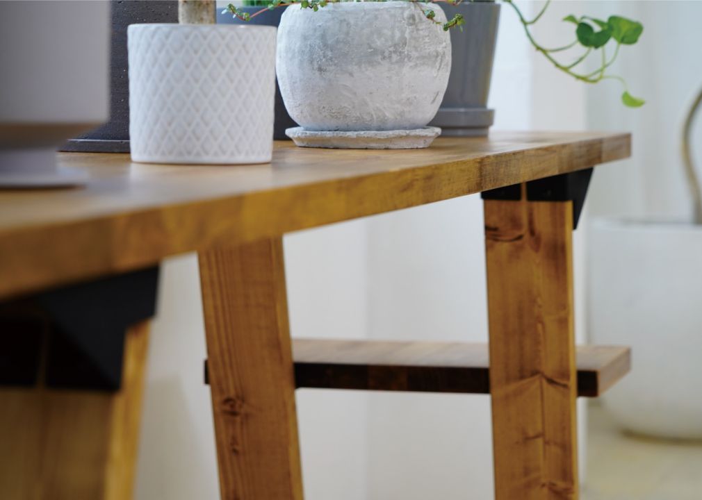 ナナレグを使えば斜めカット要らずで、簡単に斜め脚のテーブルを作ることができます。難しい加工や工程が苦手なDIY初心者の方でも、気軽に取り組めるDIYです。